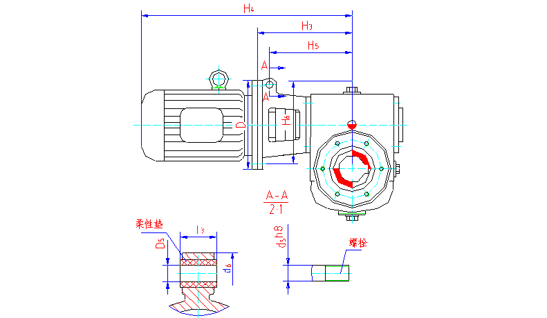 SCWSM—蜗杆在蜗轮之侧的轴装式圆弧圆柱蜗杆减速器,带电机和法兰盘;