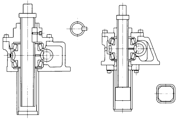 一般情况下,升降机必须具有因丝杆轴的升降而产生的行程和丝杆罩所需的空间,若想在有限的空 间内增长行程时,使用此活动螺母构造非常适应(丝杆轴旋转,活动螺母移动)。丝杆轴顶端为圆柱形,所以在长行程时,在轴端采用支撑方式,可以得到很好的效果。